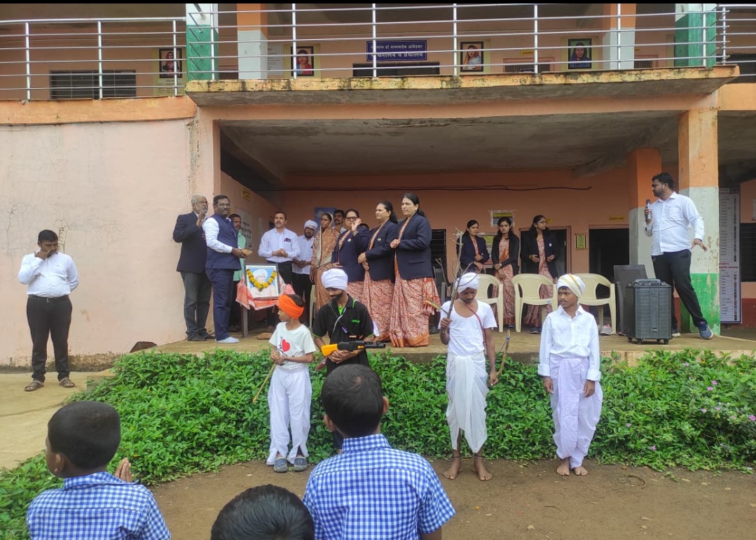 नाशिक प्रतिनिधी – महिरवणी येथे महात्मा फुले बहुउद्देशीय संस्था संचलित जिजाऊ प्राथमिक, सावित्रीबाई फुले माध्यमिक व अहिल्यादेवी उच्च माध्यमिक आश्रम शाळेत क्रांतीसुर्य भगवान बिरसा मुंडा यांच्या 150 व्या जयंतीनिमित्त जनजाती गौरव दिवस आयोजित पंधरवडा अंतर्गत दि. 3 /9/ 2025 रोजी सकाळी भगवान बिरसा मुंडा यांच्या प्रतिमेचे पूजन श्री खांडवी सर यांच्या हस्ते करण्यात आले. सदर कार्यक्रमास माजी सरपंच शांताताई गोराळे, माजी सरपंच पंडित गोराळे व शांताराम वागळे आदी ग्रामस्थ हजर होते तदनंतर प्रभात फेरीचे आयोजन करण्यात आले त्याप्रसंगी विद्यार्थ्यांनी आदिवासींच्या पारंपारिक वेशभूषा केल्या होत्या कोणी बिरसा मुंडा तर कोणी तंट्या भिल तर कोणी ख्वाजा नाईक आदि वेशभूषा केलेल्या होत्या मुलींनी आदिवासींचे पारंपारिक वेशभूषा केल्या होत्या प्रभात फेरीमध्ये विविध घोषणांनी महिरावणी परिसर दणाणून सोडला होता गावाच्या मध्यवर्ती ठिकाणी विद्यार्थिनींनी तारफा नृत्याची कला सादर केली त्यात शिक्षकांनीही सहभाग नोंदविला सर्व गावकरी तारफा नृत्य बघून आनंदित झाले
